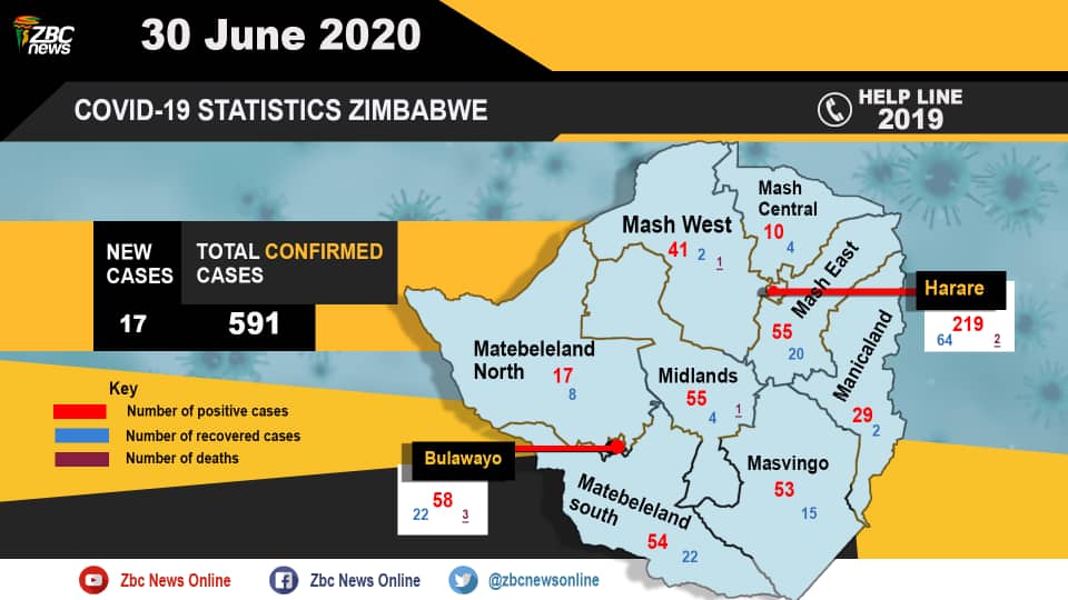 ZIMBABWE this Tuesday recorded 17 new COVID-19 cases bringing the total confirmed cases in the country to 591.